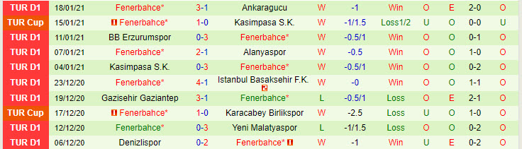 + Thống kê 10 trận gần nhất của Fenerbahce