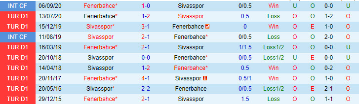 Phong độ và thống kê đối đầu Sivasspor - Fenerbahce gần đây: