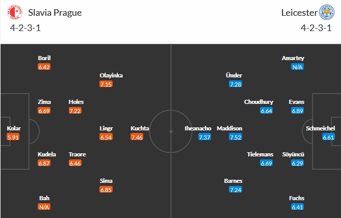 Đội hình dự kiến Slavia Praha vs Leicester City