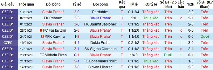 + Thống kê 10 trận gần nhất của Slavia Praha
