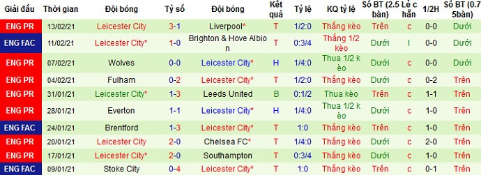 + Thống kê 10 trận gần nhất của Leicester City