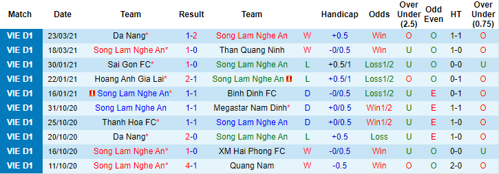 + Thống kê 10 trận gần nhất của SLNA