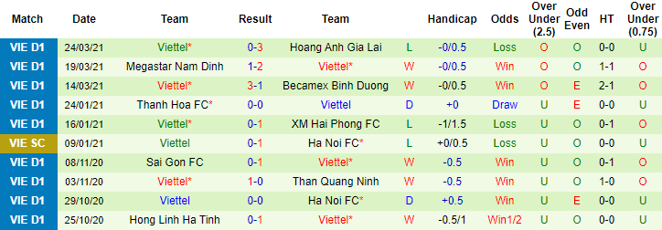 + Thống kê 10 trận gần nhất của Viettel