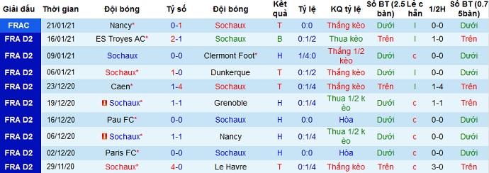 + Thống kê 10 trận gần nhất của Sochaux