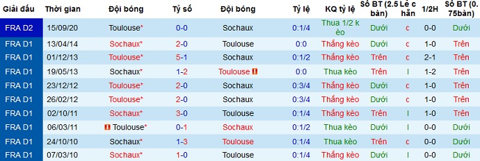 Trong giai đoạn lượt đi hồi giữa tháng 9 năm ngoái hai đội đã hòa nhau không bàn thắng ngay trên sân của Toulouse. Thế nên ngay cả khi Toulouse đang có phong độ tốt, đánh bại Sochaux ngay trên sân đối phương quả là không dễ nên chọn cửa dưới ở trận đấu này vẫn an toàn và hợp lý hơn.