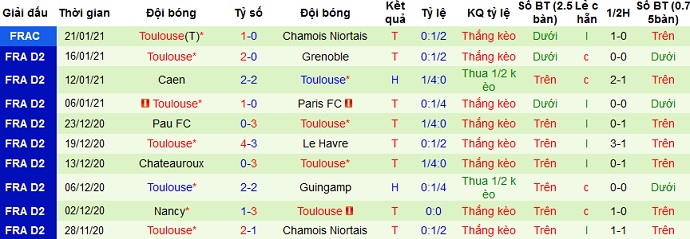 + Thống kê 10 trận gần nhất của Toulouse