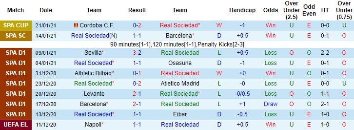 + Thống kê 10 trận gần nhất của Sociedad