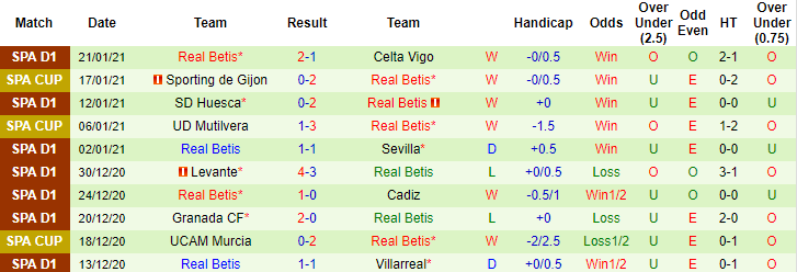 + Thống kê 10 trận gần nhất của Betis