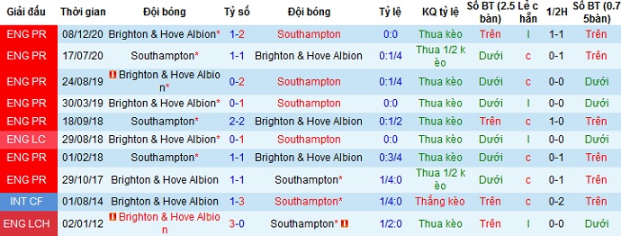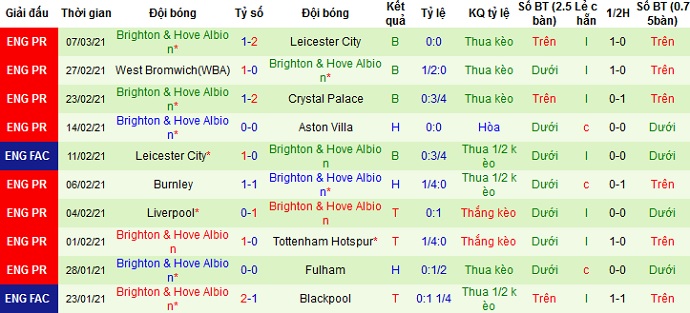 Thế nhưng trong lịch sử đối đầu ở 9 lần gần nhất giữa hai đội Brighton đã không thể giành chiến thắng trước đối thủ với 4 trận hòa và 5 trận thua. Thế nên cho dù đang rất cần điểm cho cuộc chiến trụ hạng, sẽ rất khó để đội khách Brighton có được chiến thắng. Thế nên chọn cửa dưới vẫn có phần hợp lý hơn.