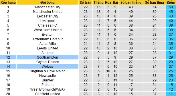 Trong khi đó Wolves còn thi đấu sa sút hơn rất nhiều so với mùa giải trước khi đang đứng thứ 14 trên bảng xếp hạng với 27 điểm sau 23 trận đã đấu. Tuy chỉ đứng trên nhóm cầm đèn đỏ 4 bậc nhưng Wolves vẫn đang có khoảng cách khá an toàn là 12 điểm.