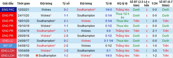 Tỷ lệ kèo Southampton vs Wolves