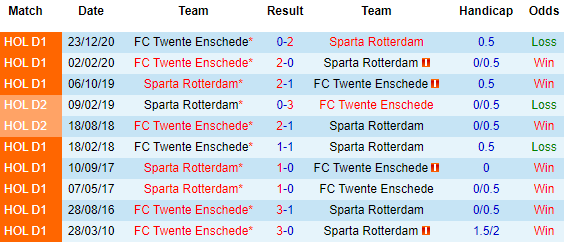 Nhìn vào màn trình diễn của đôi bên thời gian gần đây, có thể thấy cả 2 đội đều chơi khá bất ổn. Sparta Rotterdam có ưu thế sân nhà trận này, nhưng họ lại thi đấu không tốt ngay tại tổ ấm của mình với 3 thất bại liên tiếp gần đây, trong khi Twente chơi ổn định trên sân khách khi bất bại 5 trận vừa qua.