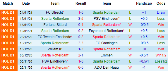+ Thống kê 10 trận gần nhất của Sparta Rotterdam