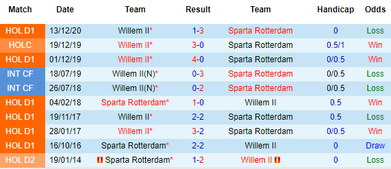 + Soi tỷ lệ kèo châu Á: Kèo chấp 3/4 với Sparta Rotterdam trận này là bước tiến với họ, bởi lần gần nhất tiếp Willem II trên sân nhà, Sparta Rotterdam chấp có hòa. Hơn nữa, trong bối cảnh 6 vòng liên tiếp toàn hòa với thua, việc Sparta Rotterdam chấp 3/4 trận này cho thấy cửa chủ nhà sáng giá.