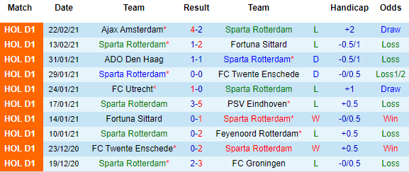 + Thống kê 10 trận gần nhất của Sparta Rotterdam