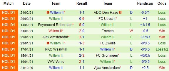 Nhìn chung thì màn trình diễn thời gian qua của đôi bên đều tương đối thất vọng, nhưng sức ép với Willem II hiện tại lớn hơn nhiều. Bên cạnh đó thì ở trận này Willem II lại phải chơi trên sân của đối thủ, nên không nhiều NHM tin rằng họ có thể giành điểm số.