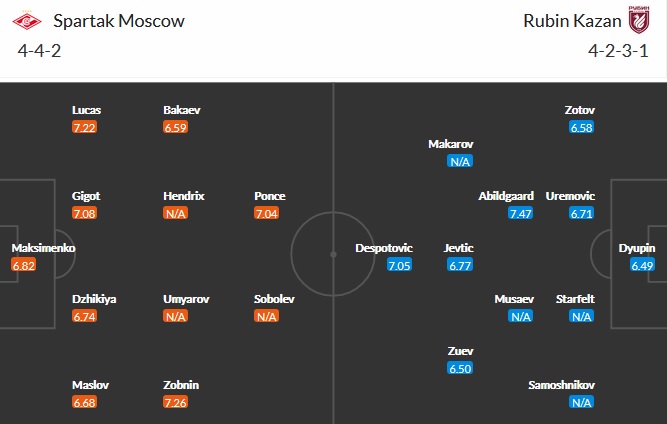 Đội hình dự kiến Spartak Moscow vs Rubin Kazan