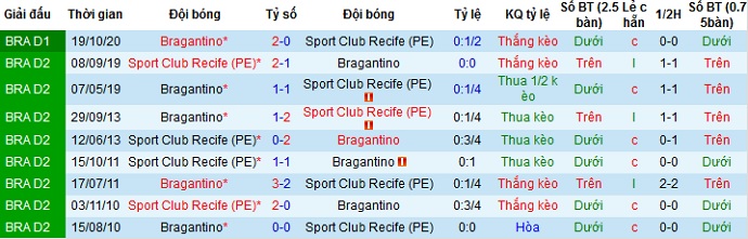 + Lịch sử đối đầu Sport Recife vs Bragantino
