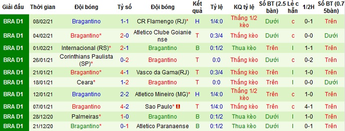 Tuy nhiên phong độ gần đây của Bragantino là khá tốt khi trong 5 trận gần nhất đội bóng cũng có được 3 trận thắng, 1 trận hòa và 1 trận thua. Thành tích sân khách của Bragantino cũng không quá tệ với 2 trận thắng, 1 trận hòa và 2 trận thua ở 5 lần du đấu gần nhất.