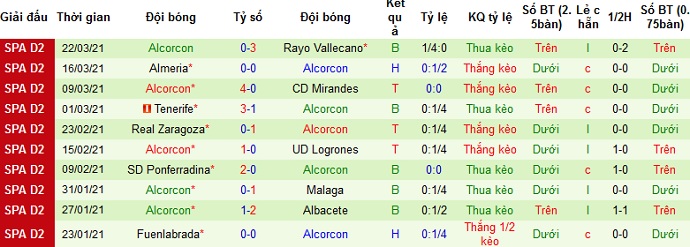 + Thống kê 10 trận gần nhất của Alcorcón