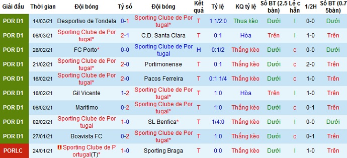 Trong cả 3 lần đối đầu gần nhất khi Sporting Lisbon được thi đấu trên sân nhà họ đều giành chiến thắng, cùng với phong độ đang rất ổn định của đội bóng nên chọn cửa trên là lựa chọn hợp lý nhất ở trận đấu này.
