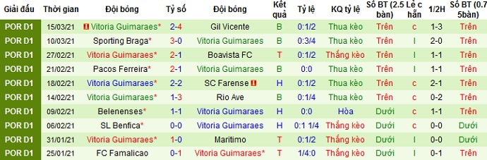 + Thống kê 10 trận gần nhất của Guimarães