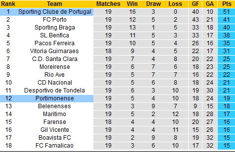 + Soi tỷ lệ kèo châu Á: Ngoài sự khác biệt đáng kể về mặt chuyên môn, Portimonense cũng là kênh đầu tư rủi ro cao cho giới mộ điệu khi mới có 42.11% số trận vượt kèo từ đầu mùa, thấp hơn nhiều so với Sporting Lisbon dẫn đầu bảng với 68.42% số trận tắng kèo.