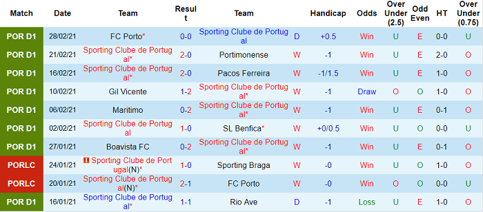 - Thống kê 10 trận gần nhất của Sporting Lisbon