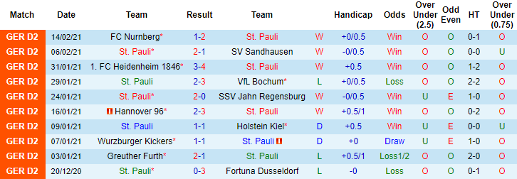 Trận đối đầu sắp tới được coi là cơ hội để St. Pauli bứt lên so với đối thủ bởi họ được thi đấu trên sân nhà. Niềm tin vào St. Pauli sớm xuất hiện sau những màn trình diễn ấn tượng gần đây của họ. 7 vòng đấu vừa qua tại giải hạng 2 Đức, St. Pauli thắng 5, hòa 1 và thắng 6 trận theo kèo châu Á.