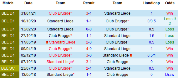 + Lịch sử đối đầu Standard Liege vs Club Brugge
