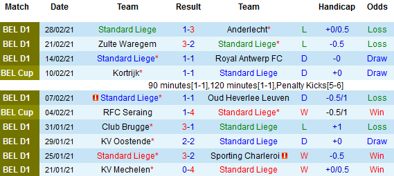 Trên thực tế, Standard Liege chỉ biết đến hòa và thua liên tiếp 4 lần gặp nhau gần nhất. Hơn nữa, đội chủ nhà vẫn chưa phát đi tín hiệu tích cực nào ở thời điểm hiện tại với 5 trận gần nhất không thắng trong thời gian thi đấu chính thức.