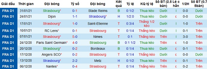 + Thống kê 10 trận gần nhất của Strasbourg