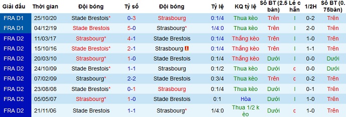 Trong 5 lần gặp nhau gần nhất Strasbourg đang có thành tích nhỉnh hơn với 3 trận thắng, 2 trận thua. Ở giai đoạn lượt đi Strasbourg cũng vượt qua Brest ngay trên sân đối phương với tỷ số 3-0. Cùng với phong độ đang rất tệ của đội khách nên chọn cửa trên ở trận đấu này hoàn toàn hợp lý.