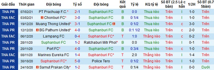 + Thống kê 10 trận gần nhất của Suphanburi