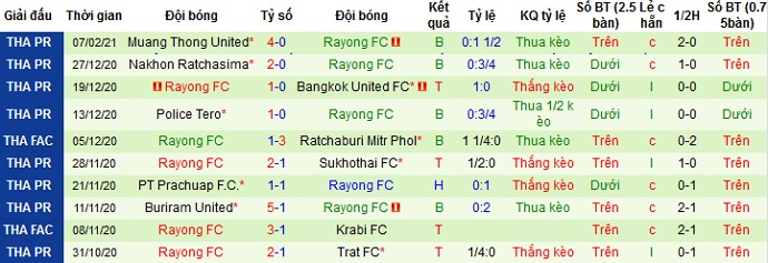 + Thống kê 10 trận gần nhất của Rayong