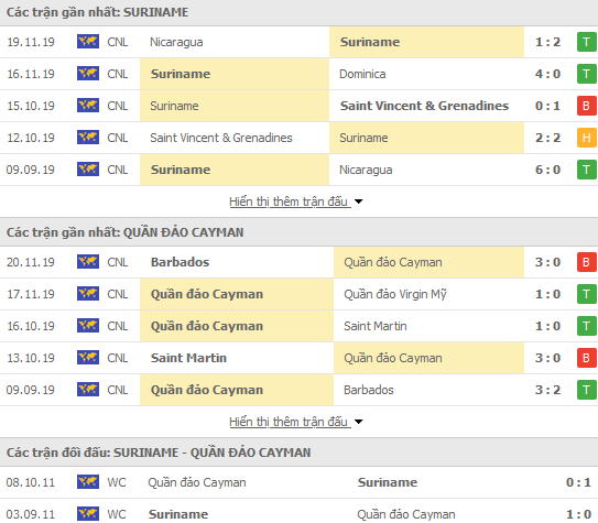Phong độ và thống kê đối đầu gần đây Surinam vs Đảo Cayman: