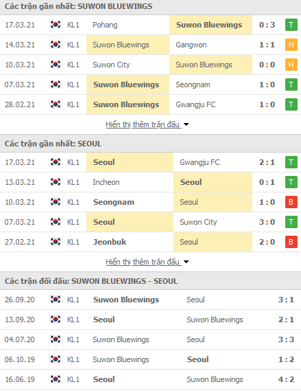 Phong độ và thống kê đối đầu gần đây Suwon Bluewings vs FC Seoul: