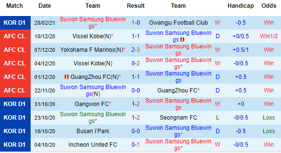 Suwon Bluewings là cái tên rất nổi tiếng trong làng túc cầu giáo Hàn Quốc, và mùa giải năm nay họ cũng có khởi đầu suôn sẻ. Ở vòng mở màn, Suwon Bluewings có được chiến thắng tối thiểu trên sân nhà trước Gwangju. Đó là cú hích về mặt tinh thần trước khi Suwon Bluewings có trận thứ 2 liên tiếp tại tổ ấm của mình.