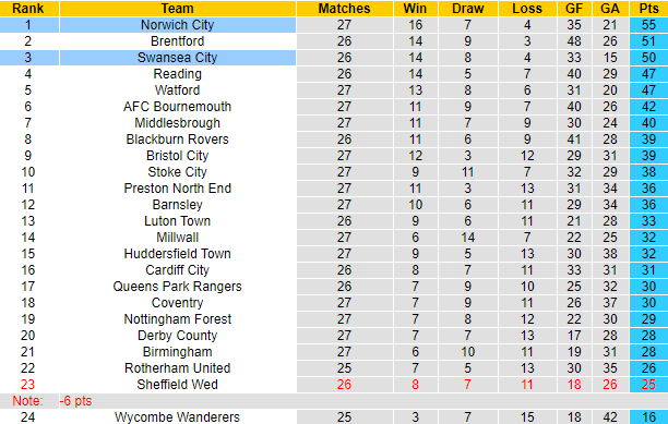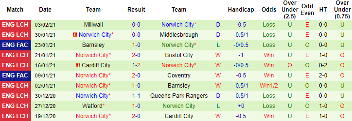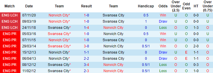Norwich toàn thắng cả 3 trận đối đầu Swansea gần đây, ghi 6 bàn và chỉ 1 lần để thủng lưới. Trên bảng xếp hạng Championship 2020/21, Norwich đang dẫn đầu với 55 điểm, Swansea xếp thứ 2 với 50 điểm. Những thông tin cho thấy Nowich hoàn toàn xứng đáng được đánh giá cao hơn đối thủ ở trận đối đầu sắp tới.