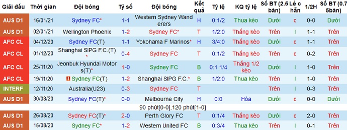 + Thống kê 10 trận gần nhất của Sydney FC