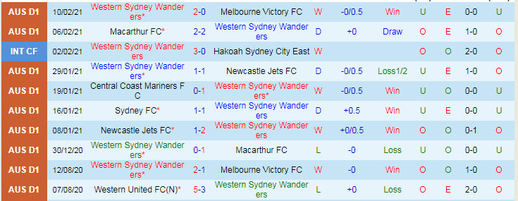 + Thống kê 10 trận gần nhất của Sydney Wanderers