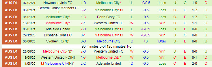 + Thống kê 10 trận gần nhất của Melbourne City