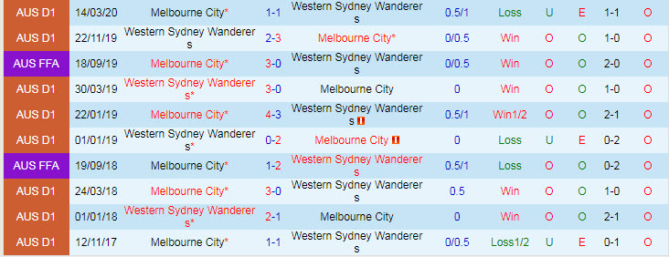 Phong độ và thống kê đối đầu Sydney Wanderers - Melbourne City gần đây: