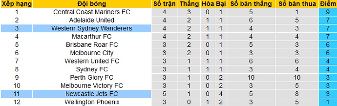 Trong khi đó Newcastle Jets có thành tích còn có phần tệ hơn so với mùa giải trước. Mặc dù đã thi đấu 5 trận nhưng Newcastle Jets mới có được 3 điểm và đang tạm đứng áp chót bảng xếp hạng nhưng đã thi đấu nhiều hơn các đội nhóm dưới 2 trận.