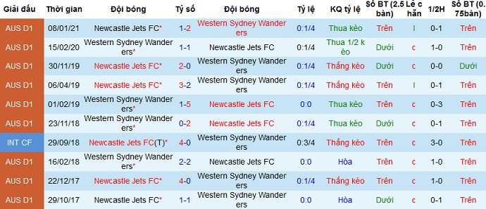 Trong cả 10 lần đối đầu gần nhất giữa 2 đội, Sydney Wanderers chỉ có được đúng 1 lần giành chiến thắng nhưng lại trên sân của đối thủ. Hiện tại Newcastle Jets vẫn đang có thành tích du đấu khá tốt nên rất có thể đội khách sẽ lại có điểm ở trận đấu này.