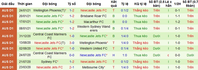 + Thống kê 10 trận gần nhất của Newcastle Jets