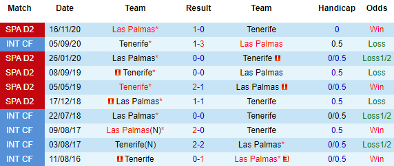 + Lịch sử đối đầu Tenerife vs Las Palmas