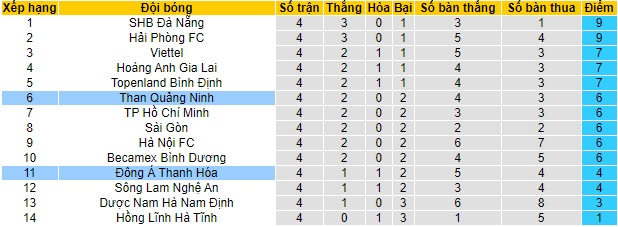 BXH V-league trước trận đối đầu giữa Than Quảng Ninh và Thanh Hoá