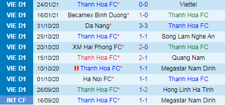 + Thống kê 10 trận gần nhất của Thanh Hóa