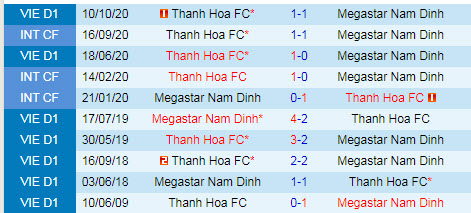 Phong độ và thống kê đối đầu Thanh Hóa - Nam Định gần đây: